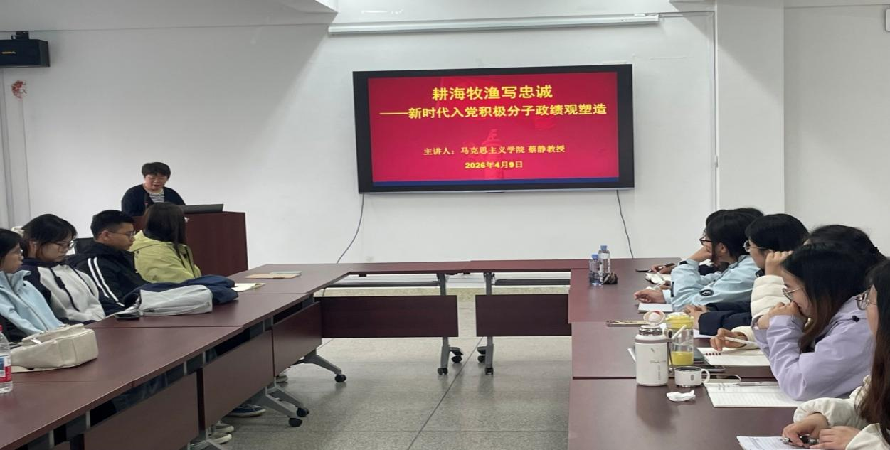 进一步加强入党积极分子思想教育,4月9日,永利3044noc联合海洋科技与环境学院开展“耕海牧渔写忠诚——新时代入党积极分子政绩观塑造”专题党课,由学院蔡静教授主讲,两院全体入党积极分子参与学习。